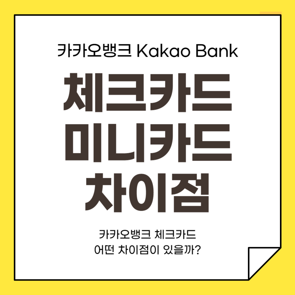 안녕하세요! 오늘은 많은 분들이 궁금해하시는 카카오뱅크 체크카드와 카카오뱅크 체크카드 미니(mini)의 차이점에 대해 알아보려고 합니다. 두 카드는 같은 카카오뱅크에서 제공하지만, 사용자층과 사용 방식에서 차이가 있어서 선택에 참고하시면 좋을 것 같아요.