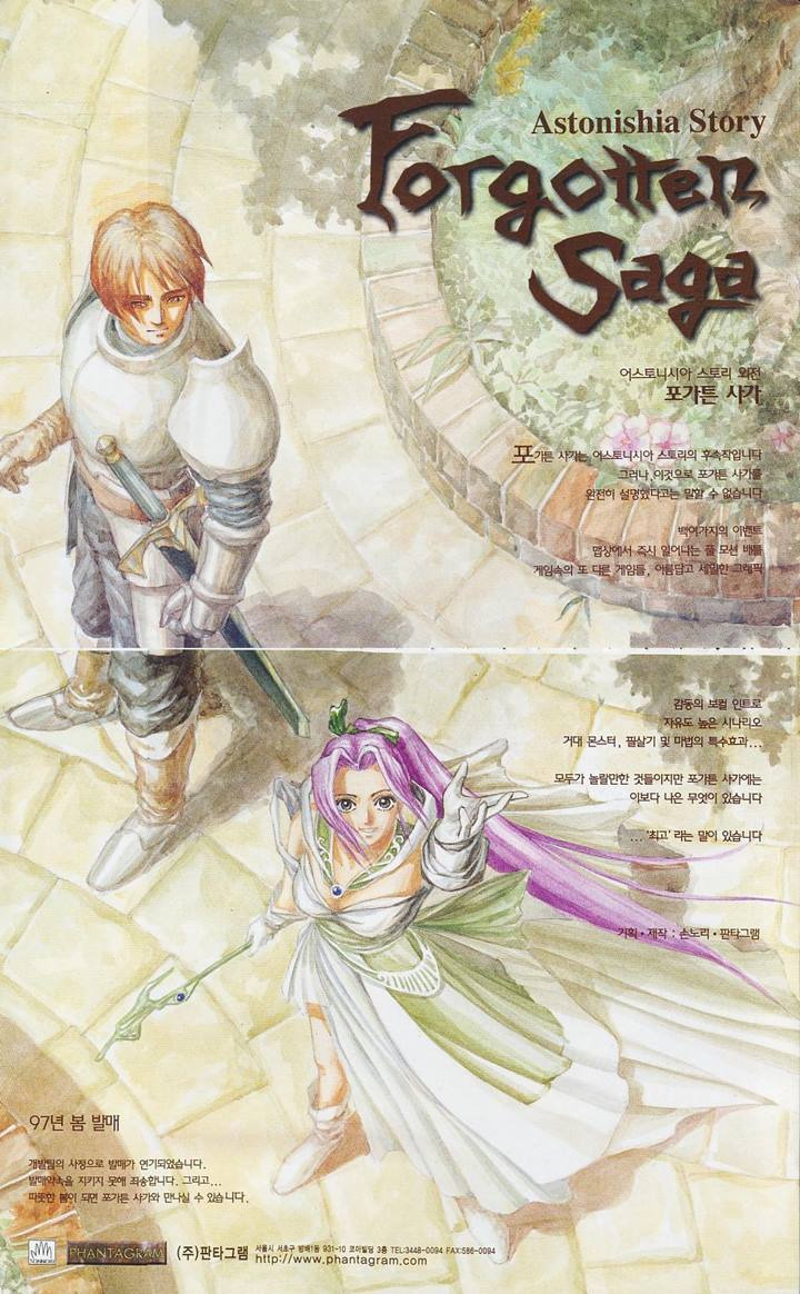 포가튼 사가(Forgotten Saga)는 1997년 11월 손노리가 발매한 대한민국의 롤플레잉 게임(RPG)으로, “어스토니시아 스토리” 시리즈의 외전작입니다. 이 작품은 전작의 사건 이후를 배경으로 하며, 라